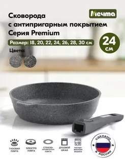 Сковорода антипригарная премиум Grey, 24 см, съемная ручка