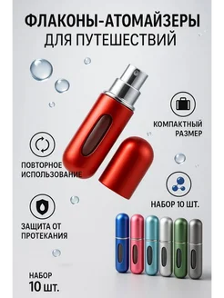 Мини флаконы для духов с распылителем 5 мл 10 шт набор