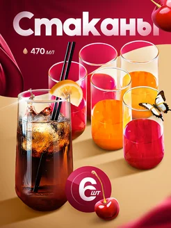 Стаканы стеклянные праздничные набор 6 шт. 430 мл