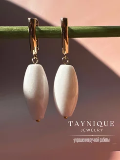 Серьги из белого агата позолоченные