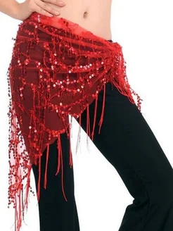 Пояс для восточных танцев с пайетками красный