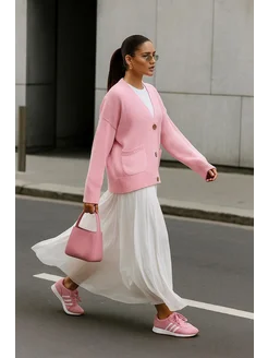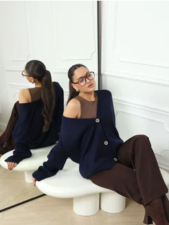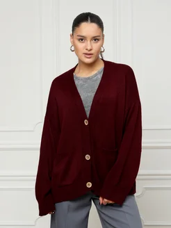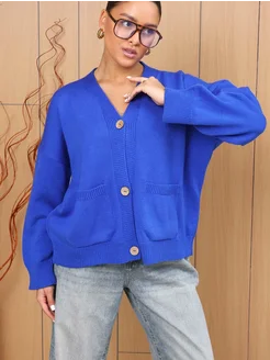 Вязаный удлиненный кардиган на пуговицах с карманами