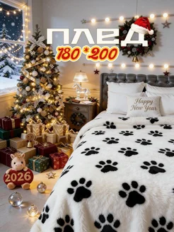 плед 180x200 евро флисовый лапки