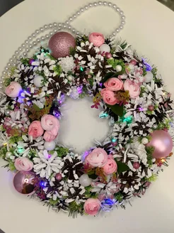 венок новогодний на дверь большой с подсветкой