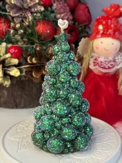 Свеча декоративная Елка из шаров блестящая