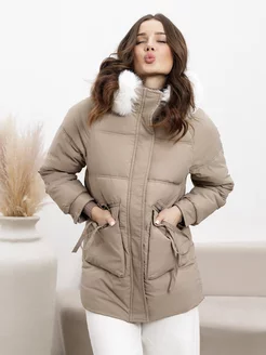 Куртка женская зимняя с мехом осень длинная с капюшоном