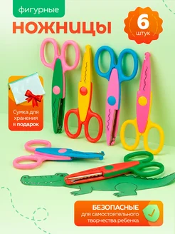Ножницы фигурные канцелярские детские для творчества 6 штук