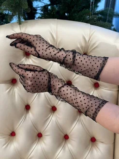 Перчатки-сетка длинные в горошек