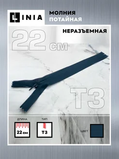Молния потайная Т3 неразъёмная однозамковая 22см