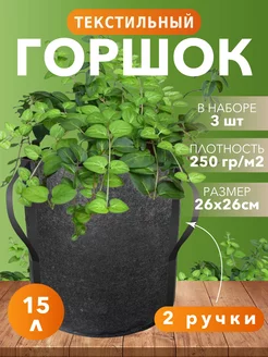 Текстильный горшок для растений с ручками 15 литров 3 штуки