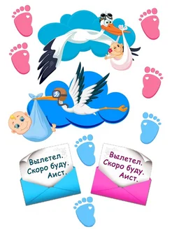 Вафельная картинка .Вафельная бумага для гендер пати. аист