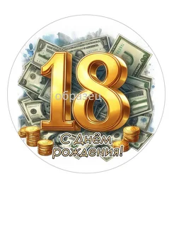 Вафельная картинка с днём рождения. 18 лет