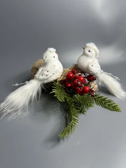 Елочная игрушка Набор Белых птичек "Хвост перо" 4 шт