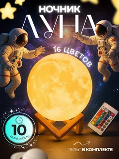 Ночник Луна 16 цветов с пультом и подставкой USB