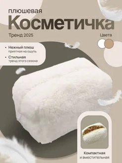 косметичка плюшевая бежевая большая