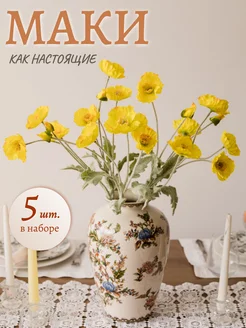 Искусственные маки для декора 5 веток