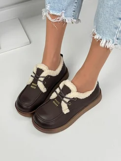 Лоферы на платформе с мехом miu миу