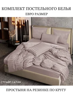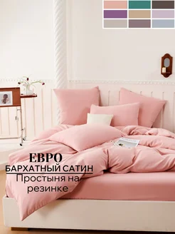 Постельное белье евро на резинке бархатный сатин