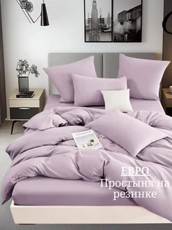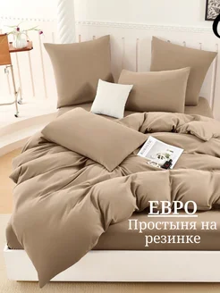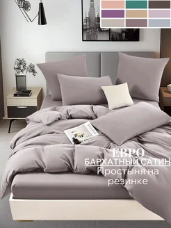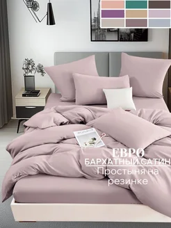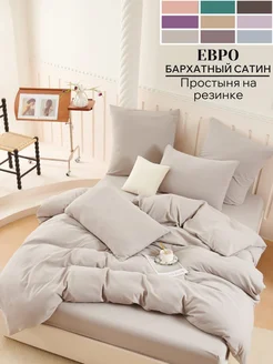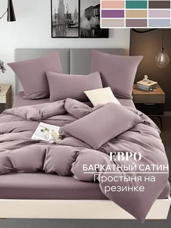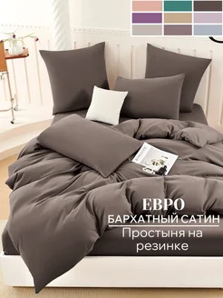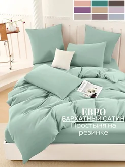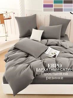Постельное белье евро на резинке 180х200 бархатный сатин