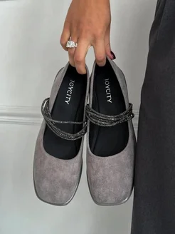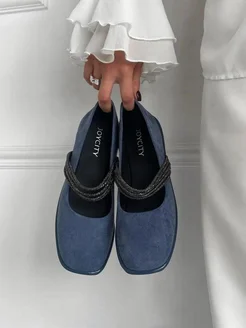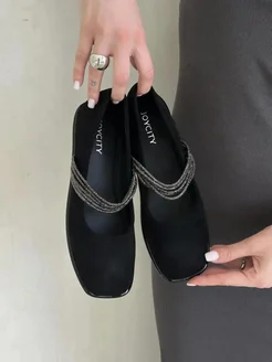 Балетки с ремешком с квадратным носом