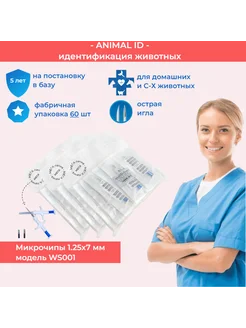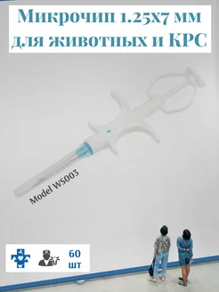 Микрочипы 1.25х7 мм для животных 60 шт в шприце Model WS001