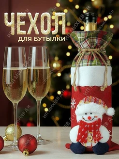 Подарочный новогодний чехол для бутылки ВИНА Снеговик
