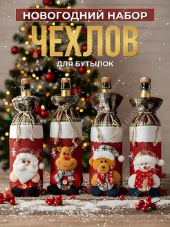 Подарочный новогодний чехол для бутылки ВИНА набор 4 штуки