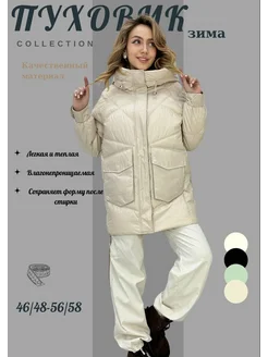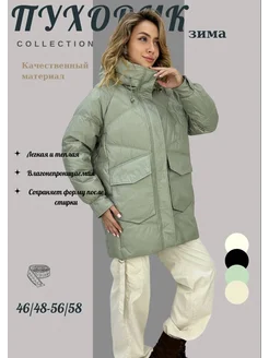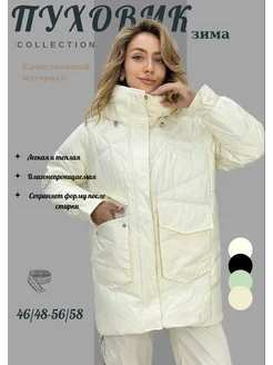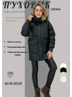 Куртка зимняя женская оверсайз длинная с капюшоном