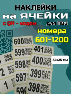 Наклейки с номерами 601-1200 для нумерации ячеек на ПВЗ с ШК