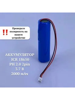 Аккумулятор 18650 ICR с кабелем JST PH 2 0 2pin 2000мАч