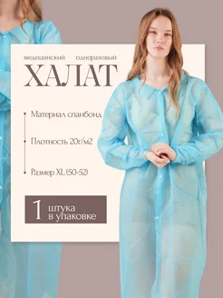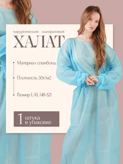 Халат одноразовый медицинский спецодежда 30 гр м2, XL1 шт