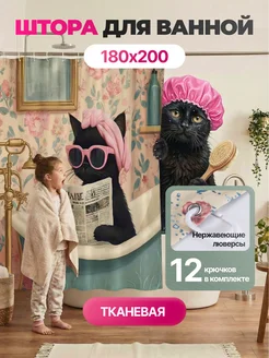 Штора для ванной тканевая 180х200 "Кошечка в ванне"