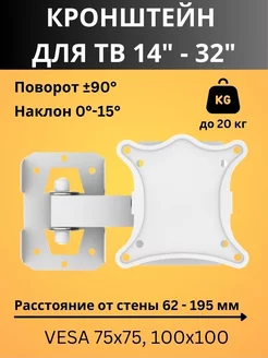 Кронштейн для телевизора на стену наклонно-поворотный 14-32"
