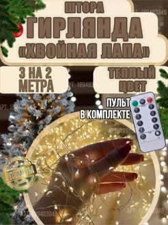 Новогодняя гирлянда штора хвойная лапа 3Х2
