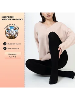 Зимние хлопковые теплые с мехом колготки