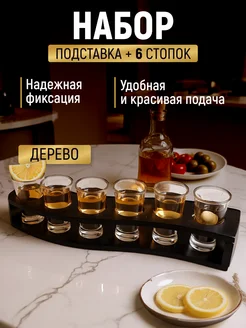 Шотница подставка деревянная для шотов и 6 рюмок 50мл набор