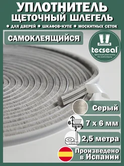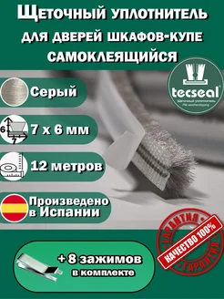 18 м 7x6 мм уплотнитель щеточный для шкафа серый