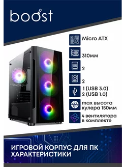 Игровой корпус Mini Tower с 4 вентиляторами в комплекте