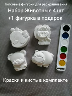 Гипсовые фигурки для раскрашивания Звери 6шт