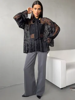 Блузка прозрачная кружевная нарядная с длинным рукавом