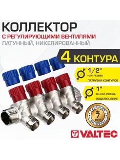 Коллектор с регул. вентилями 1"x 4 выхода 1 2" нар.р