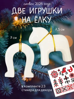 Ёлочные игрушки набор 2 шт символ года 2026 лошадь и подкова