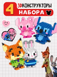 развивающий конструктор 3Д из миниблоков, набор 4 шт
