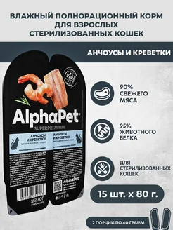 Влажный корм для кошек анчоусы креветки 80 гр 15 шт