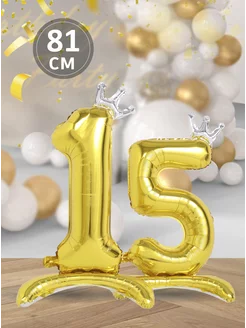 Воздушные шары цифры 15 фольгированные надувные на подставке