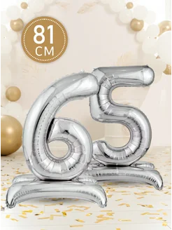 Фольгированный воздушный шар цифра 65 на подставке