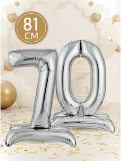 Фольгированный воздушный шар цифра 70 на подставке