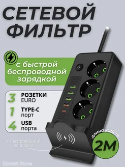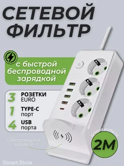 Сетевой фильтр удлинитель 3 розетки с USB Type C