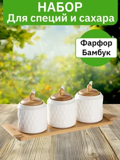 Набор фарфоровых ёмкостей для сахара соли и специй