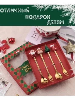 Новогодний набор детских приборов десертных из 4 штук